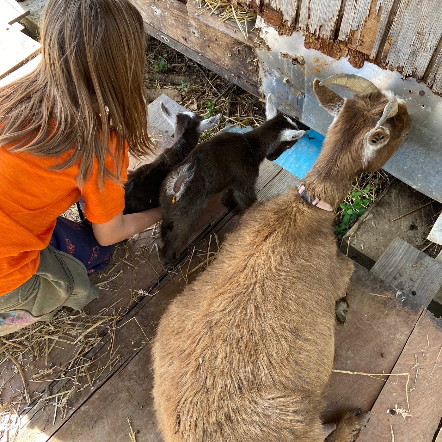 ROOTS does this through farm and forest schooling in homeschool enrichment programs, summer camps, after-school programs, yoga & SEL classes, field trips, school & community collaborations, birthday parties, toddler nature exploration classes, and soon: a 4-day nature school. Our vibrant learning environment includes pollinator gardens, food forests, nature playscape, and children's gardens, alongside the care of animals like goats, chickens, ducks, and rabbits.